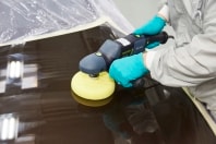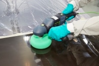 Segundo: lija la zona con el disco de acabado fino 3M™ Trizact™ 443SA, grano 3000, 150 mm, en una lijadora orbital, a continuación, ¡limpia la zona!