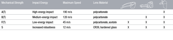 • EN 167, 2002: Métodos de ensayo ópticos; por ejemplo, refracción de la luz, refracción esférica y refracción astigmática